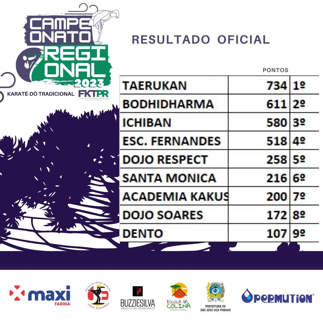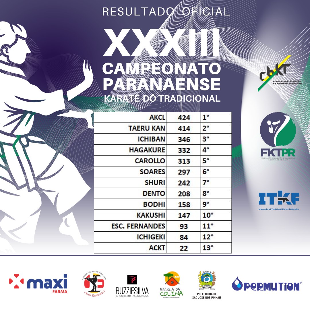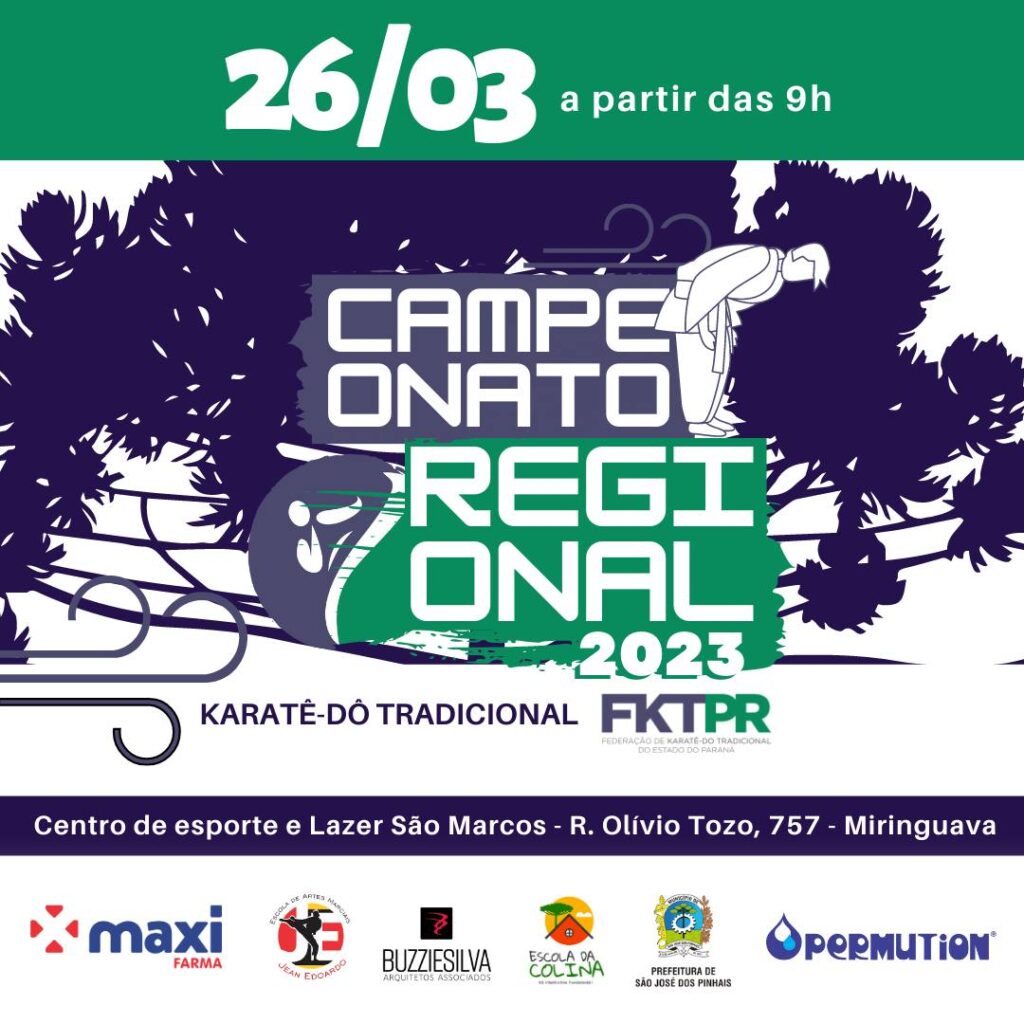 – Com o apoio da Secretaria de Esporte e Lazer da Prefeitura de São José dos Pinhais, a Federação de Karatê Tradicional do Paraná (FKTPr) realizou o XXXIII Campeonato Paranaense de Karatê-dô Tradicional, que reuniu cerca de 230 atletas de 15 agremiações no Centro de Esportes São Marcos, de São José dos Pinhais (PR). Clique aqui para ler a notícia completa